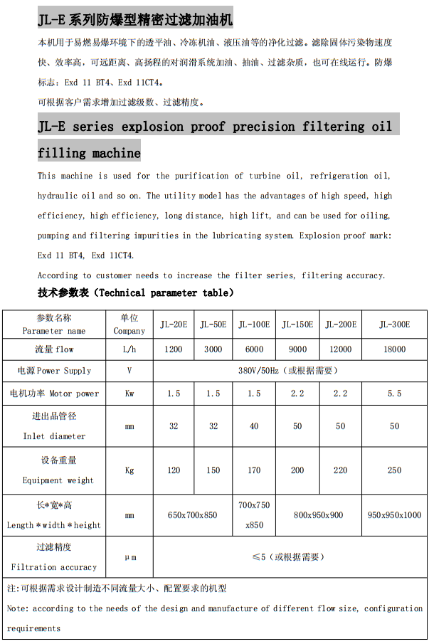 JL-E系列防爆型精密過濾加油機